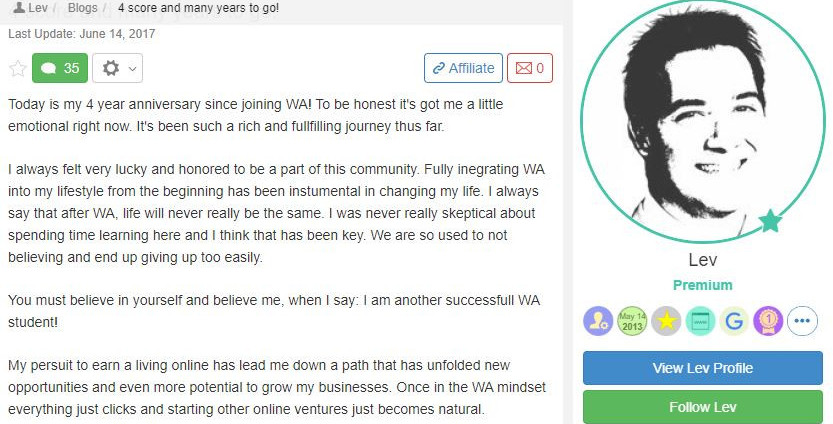 I’m using Wealthy Affiliate myself to host my websites at no additional cost to me. Although the speed at which everyone is having success online is different, Wealthy Affiliate training has proven to be a guarantee for success if you go through it and apply what you’ve learned.